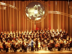 Ważną rolę w jakościowym brzmieniu instrumentów zagrali przedstawiciele dyrekcji orkiestry: usłyszawszy opinię techników o to, że jest potrzebne pogłebianie wszystkiego scenicznego planu dla zmniejszenia powrotnego związku przez portale i dla lepszego oświetlenia chóru, oni od razu godziły się i orkiestra z chórem zostały maksymalnie ruszone w głąb sceny. Z fachowcami zawsze lekko pracować. Przednia część sceny głębią 3 m pozostała wolnej, co było wygodnie operatoram kamery.