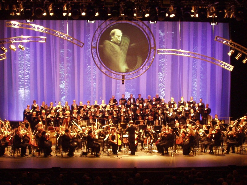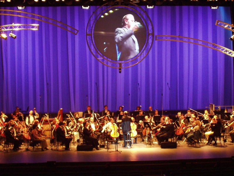 Setka muzyków symfonicznej orkiestry w bezpośredniej bliskości do wzmacniającego dźwięk systemu − to jest bardzo nie stabilna sytuacja, w której dosyć skomplikowano otrzymać możliwe do przyjęcia brzmienie. Dlatego zdecydowano było “usuwać” każdy instrument jak najbliższej, żeby otrzymać maksymalne wzmacnianie i wyraźność sygnałów. Wszystkie strunowe nagrywały się kondensacyjnymi mikrofonami Ń 414 i Ń451, po jednym na dwa instrumenty i tylko basetli wzmacniały się przez dynamiczne AUDIX D6, przy czym na sześć instrumentów było pięć mikrofonów. Dynamiczne mikrofony z bardzo lekkimi membranami D1 i D2 były skupione na “drzewie”, po jednym na dwa instrumenty, zestawy z różnych kondensacyjnych i dynamicznych mikrofonów czyniły z perkusją. Chór, który składał się w przybliżeniu z 60 osób, nagrywał się starymi Ń3000 (6 sztuk). Ogółem blisko 80 mikrofonów plus prowadzącemu i dwa radiomikrofony dla uroczystych momentów.