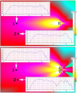 Dzięki powyżej zaznaczonym akustycznym zjawiskom częstotne charakterystyki dźwiękowego systemu mocno zmieniają się w zależnści od miejsca rozkładu pomiarowego mikrofonu. Dlatego, zobaczywszy spektralne wymiary wysokiej rozdzielczości, zrobione w różnych miejscach udźwiękowienia, więcej nigdy nie wrócicie do myśli, że equalizacją globalnie wpływa na dźwięk w sali.