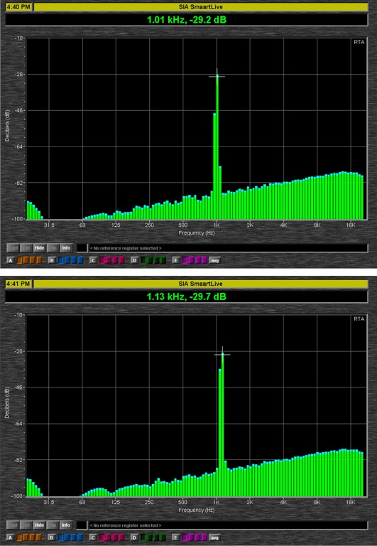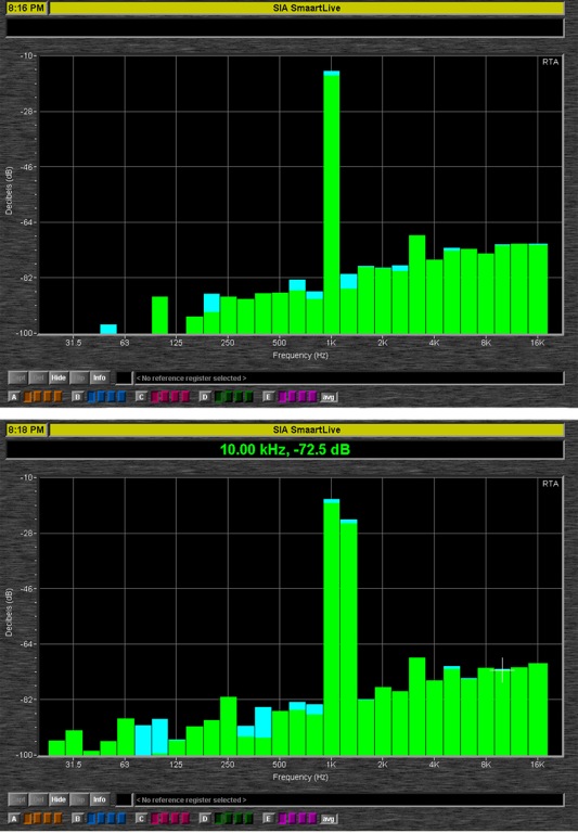 Po drugie, RTA nie pozwala wyznaczyć, czy ma przedstawiana krzywa choć jakiś stosunek do sygnału, który nadchodzi na dynamiki systemów. On prosto składa sprawozdanie o stan akustycznej energii w pustce mikrofonu, nie dając pojęcia o możliwych przyczynach dołow i podniesień w świadectwach. Te doły mogą być wywołane wczesnymi odzwierciedleniami albo współdziałaniem systemów, że, pewną miarą, poddaje się equalizacji. Jednak, przyczyną nierównomierności mogą okazać się późne odbicia, szum silnika albo wibracja dekoracyjnych boazerii, nieliniowe aberracje albo tło w złym kablu mikrofonu. Equalizer nie będzie mieć powodzenia w walce z przeszkodami takiego rodzaju, ale nie burzcie się, RTA nawet nie da do zrozumienia na podejrzenie o ich istnienie. Dwa różne dźwiękowe systemy mogą okazać się całkiem jednakowymi według wskaźników na ekranie analizatora, ale jeśli sądzić po brzmieniu, jeden z ich może być absolutnie niewyraźnym i niemuzycznym, a inny − arcydziełem sztuki i nauki.
