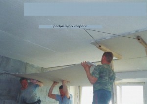 Podczas wszystkich tych prac pracownicy muszą przesuwać się po pomieszczeniu po zawczasu zawartych blatach żeby uniknąć wyłamywania płyt gypsowych.