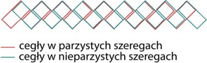 Po trzecie, można ulepszyć antyrezonansowe właściwości ceglanej ściany między oknami, jeśli zastosować murowanie «choinką» (patrz rysunek 9). Poza tym, przy takim murowaniu nasza ściana między oknami będzie posiadać również dobrymi dyfuzyjnymi właściwościami w diapazonie średniej i wyższej średniej częstości.