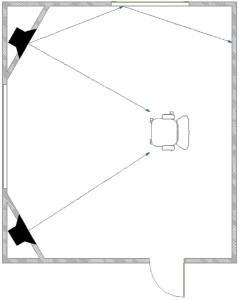 Potem, jak wykonaliśmy i uwzględniliśmy pierwsze wymaganie, które dotyczy ustawienia monitorów, gwarantowaliśmy sobie na przyszłość dokładny odbiór prostego dźwięku od nich. Było by dobrze, gdyby wszystko tak i zostawało. Ale naprawdę postrzegamy nie tylko prosty dźwięk od monitorów. Swoja ratą (przy czym negatywną) do ostatecznego odbioru dźwięku w kontrolnym pokoju wnoszą harmoniczne rezonansy pomieszczenia, a także wczesne odzwierciedlenia od jego powierzchni. W jakimkolwiek razie, ani harmoniczne rezonansy, ani wczesne odzwierciedlenia od powierzchni pomieszczenia nie sprzyjają precyzji monitoringu, i czym więcej ich i silniej oni będą, tym dalej będziemy oddalały się od naszego celu.