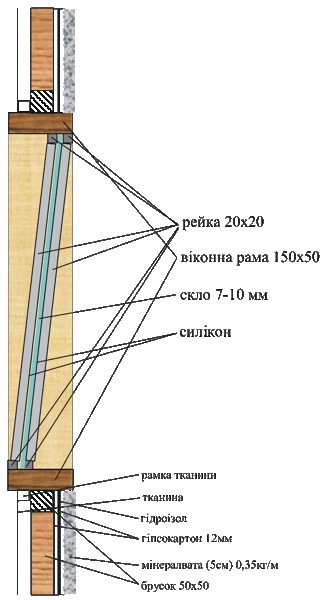 Вікнам і дверям в студії була присвячена окрема стаття нашого циклу. Конструкції вікон можуть бути різноманітними. Один з варіантів показаний на рисунку 12.