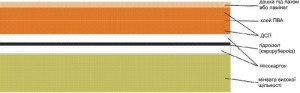 - рясно змазати нижній шар ДСП клеєм ПВА (зверху).