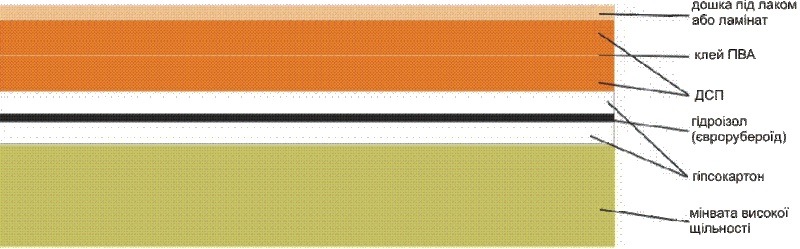 В цьому випадку підлога буде мати структуру, як зображено на рисунку 6. Послідовність робіт буде наступною: