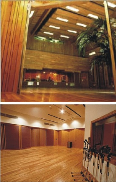 Рисунок 4. Великі тон-зали зі змінною акустикою. Можна побачити поворотні конструкції на стінах та стелі. На верхньому фото — тон-зала студії Olimpic, Лондон