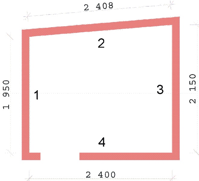 Розглянемо етапи будівництва дикторської кабіни на прикладі приміщення з конкретними розмірами і зробимо це у вигляді завдання будівельникам. На рисунку 5 показаний план вокальної кімнати з площею підлоги всього близько 7 м2 і висотою стелі 3 м. Припустимо, що поверхні кімнати виконані з пінобетону, а відповідні роботи зі звукоізоляції вже проведені..