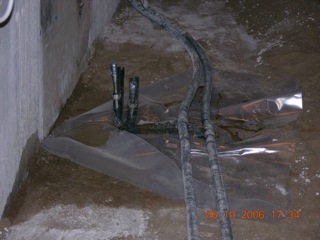 До улаштування «плаваючої підлоги» були проведені деякі підготовчі роботи: зняті радіатори опалення та зроблені запасні відводи (див. фото 6), зроблені віконні та дверні прорізи в бетонних стінах, пророблені отвори для кабелів і повітроводів, а структурна підлога була вирівняна шаром піску (див. фото 4). Потім приступилися до виготовлення «плаваючої підлоги». Відсутність обмежень по вазі конструкцій дозволяла робити нам важку підлогу, що − в сполученні з правильно підібраною основою − мала низьку резонансну частоту. З огляду на загальну товщину підлоги − понад 20-ть сантиметрів − в нас була можливість прокласти всі необхідні кабель-канали в товщі підлоги, що й було зроблено (див. фото 7).